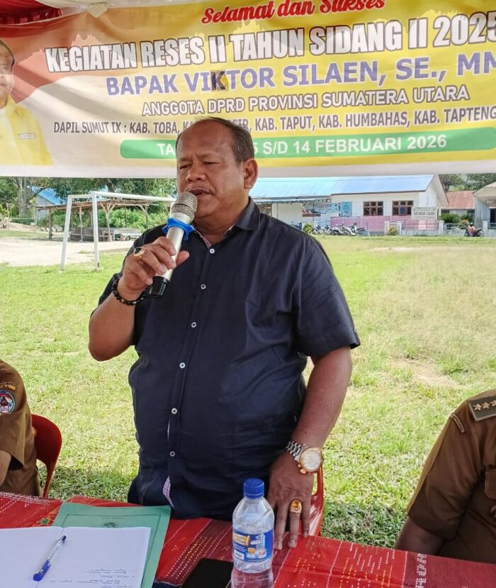 Toba-Intipnews.com : Anggota DPRD Provinsi Sumatera Utara Daerah Pemilihan (Dapil) IX, Victor Silaen SE MM, melaksanakan kegiatan Reses II Tahun Sidang II 2025–2026 tadi siang, Selasa, 10 Februari 2026 di Lapangan Parbalean, Desa Silaen, Kecamatan Silaen. Kegiatan ini merupakan bagian dari agenda reses yang berlangsung pada 5 hingga 14 Februari 2026. Acara diawali dengan doa yang dipimpin oleh St. Hembang M. Silaen.