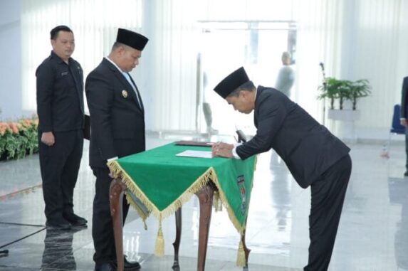 Asahan-Intipnews.com:Wakil Bupati Asahan, Rianto melantik Dr. Bukit Buchori Siagian sebagai Kepala Pelaksana Badan Penanggulangan Bencana Daerah (BPBD) Kabupaten Asahan dalam acara yang digelar di Aula Kantor Bupati Asahan, Selasa (19/08/2025).
