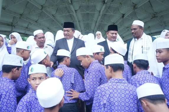 Meski upacara diguyur hujan, semangat para santri tidak surut. Ribuan peserta tetap mengikuti jalannya kegiatan dengan khidmat sambil mengibarkan bendera dan menyanyikan lagu-lagu perjuangan. Suasana penuh semangat ini mencerminkan nilai-nilai ketangguhan dan keikhlasan yang menjadi ciri khas dunia pesantren. Dalam konteks ini, Bupati Asahan menegaskan bahwa semangat dan dedikasi santri sejalan dengan visi Pemerintah Kabupaten Asahan, yaitu “Asahan Sejahtera, Religius, Maju, dan Berkelanjutan.” Menurutnya, sinergi antara pemerintah dan kalangan pesantren menjadi fondasi penting dalam membangun masyarakat yang berilmu, beriman, dan berdaya saing menuju kemajuan yang berkeadaban. (Dolly Simbolon)
