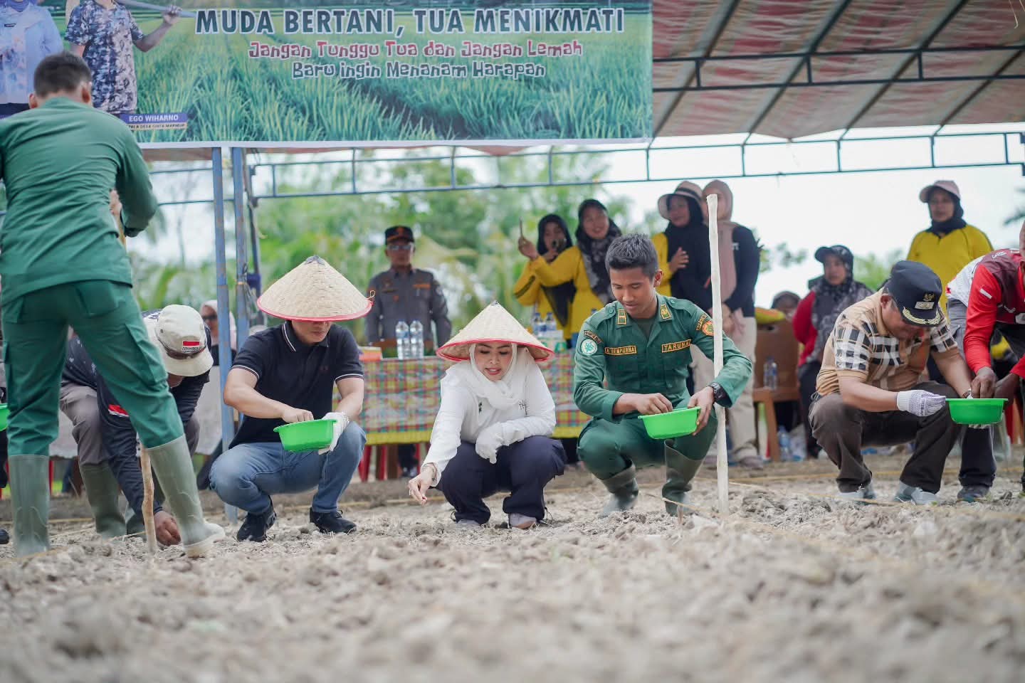 Panai Hulu-Intipnews.com:Bupati Labuhanbatu, dr. Hj. Maya Hasmita Sp.OG., M.K.M., dan Wakil Bupati, H. Jamri, S.T., bersama Dandim 0209/LB, Letkol Inf. Yudy Ardiyan Saputro, S.IP., melakukan penanaman padi darat gogo, di Desa Cinta Makmur, Kecamatan Panai Hulu, Minggu (2/11/25).