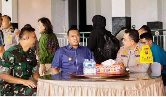 Di mess Pemprovsu, Kapolda mendengarkan pemaparan komandan posko terkait kesiapan pengamanan event Aquabike dan F1H2O yang berlangsung di Balige (FOTO).