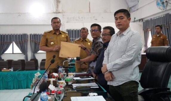 Toba-Intipnews.com:Bupati Toba Effendi Napitupulu SE menyampaikan Nota Pengantar Rancangan Perubahan Kebijakan Umum Anggaran (PKUA) dan Rancangan Perubahan Prioritas dan Plafon Anggaran Sementara (P.PPAS) Anggaran Pendapatan dan Belanja Daerah (APBD) Kabupaten Toba Tahun Anggaran 2025 kepada DPRD Toba (FOTO) pada rapat paripurna yang digelar di gedung DPRD Toba pada Selasa (19/8/2025).