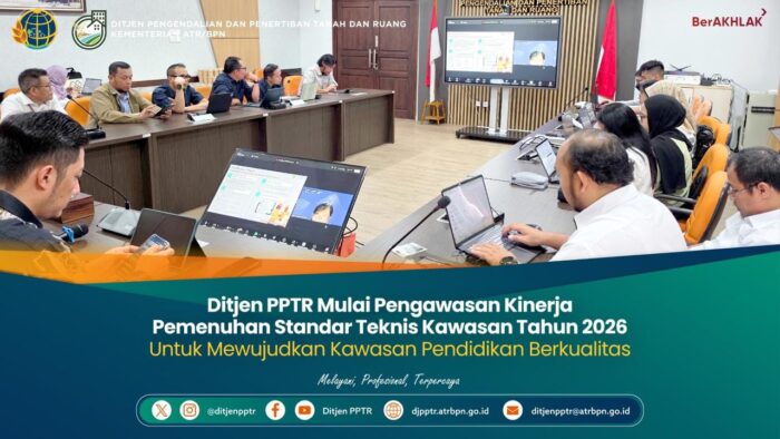 Jakarta-Intipnews.com:Direktorat Jenderal Pengendalian dan Penertiban Tanah dan Ruang (PPTR) c.q Direktorat Pengendalian Pemanfaatan Ruang telah menyelenggarakan Rapat Kick Off Meeting dan pembahasan Klarifikasi Delineasi Pengawasan Kinerja Pemenuhan Standar Teknis Kawasan Tahun 2026, acara ini menandai dimulainya pelaksanaan pengawasan melalui tahap persiapan. Kegiatan ini dilaksanakan pada Selasa, (10/3/2026) secara hybrid baik luring dan daring. Peserta rapat dihadiri oleh perwakilan masing-masing pengelola kawasan pendidikan, perwakilan UI GreenMetric World University Rankings, perwakilan Kementerian Pendidikan Tinggi, Sains, dan Teknologi Republik Indonesia, perwakilan pemerintah daerah provinsi, kabupaten/kota terkait serta badan terkait lainnya seperti Perusahaan Umum Daerah Air Minum (PDAM) dan PT. PLN (Persero).