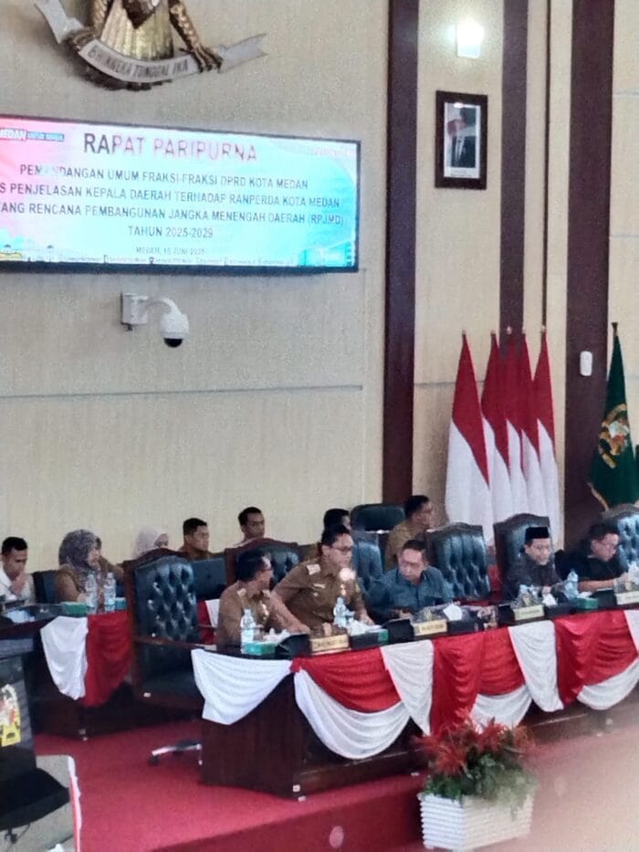 Terakhir Fraksi PAN Perindo menilai pengajuan RPJMD terlambat. Terhitung 16 Juni 2025 kepemimpinan Wali Kota Medan Rico Tri Putra Bayu Waas dan Wakil Wali Kota Medan Zakiyuddin Harahap sudah berlangsung 116 hari. Berdasarkan Instruksi Mendagri Nomor 2 tahun 2025 penyampaian Ranperda RPJMD tahun 2025 -2029 kepada DPRD paling lama 90 hari setelah kepada daerah dan wakil kepala daerah dilantik. “Keterlambatan seperti ini kiranya tidak terulang kembali ke depannya,” harapnya.Itp05