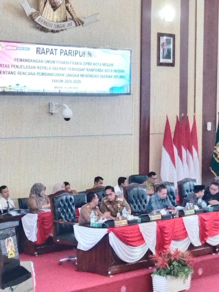 Medan-Intipnews.com:Dalam Rapat Paripurna Pandangan Umum Fraksi Partai Demokrat DPRD Kota Medan, Senin (16/6/2025), Fraksi Partai Demokrat meminta Pemkot Medan untuk memprioritaskan “Misi Energik” dan “Misi Unggul” dalam Rencana Pembangunan Jangka Menengah Daerah (RPJMD) 2025-2029.