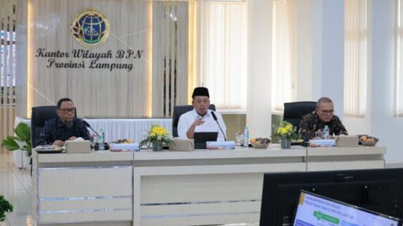 Lampung-Intipnews.com:Menteri Agraria dan Tata Ruang/Kepala Badan Pertanahan Nasional (ATR/BPN), Nusron Wahid, memberikan imbauan kepada jajaran Kantor Wilayah BPN Provinsi Lampung untuk mempercepat pelaksanaan Reforma Agraria, khususnya dalam pemetaan dan pemanfaatan lahan yang belum terdaftar. Dalam kunjungannya, Menteri Nusron menekankan perlunya perubahan pola kerja di seluruh satuan kerja BPN di Lampung.
