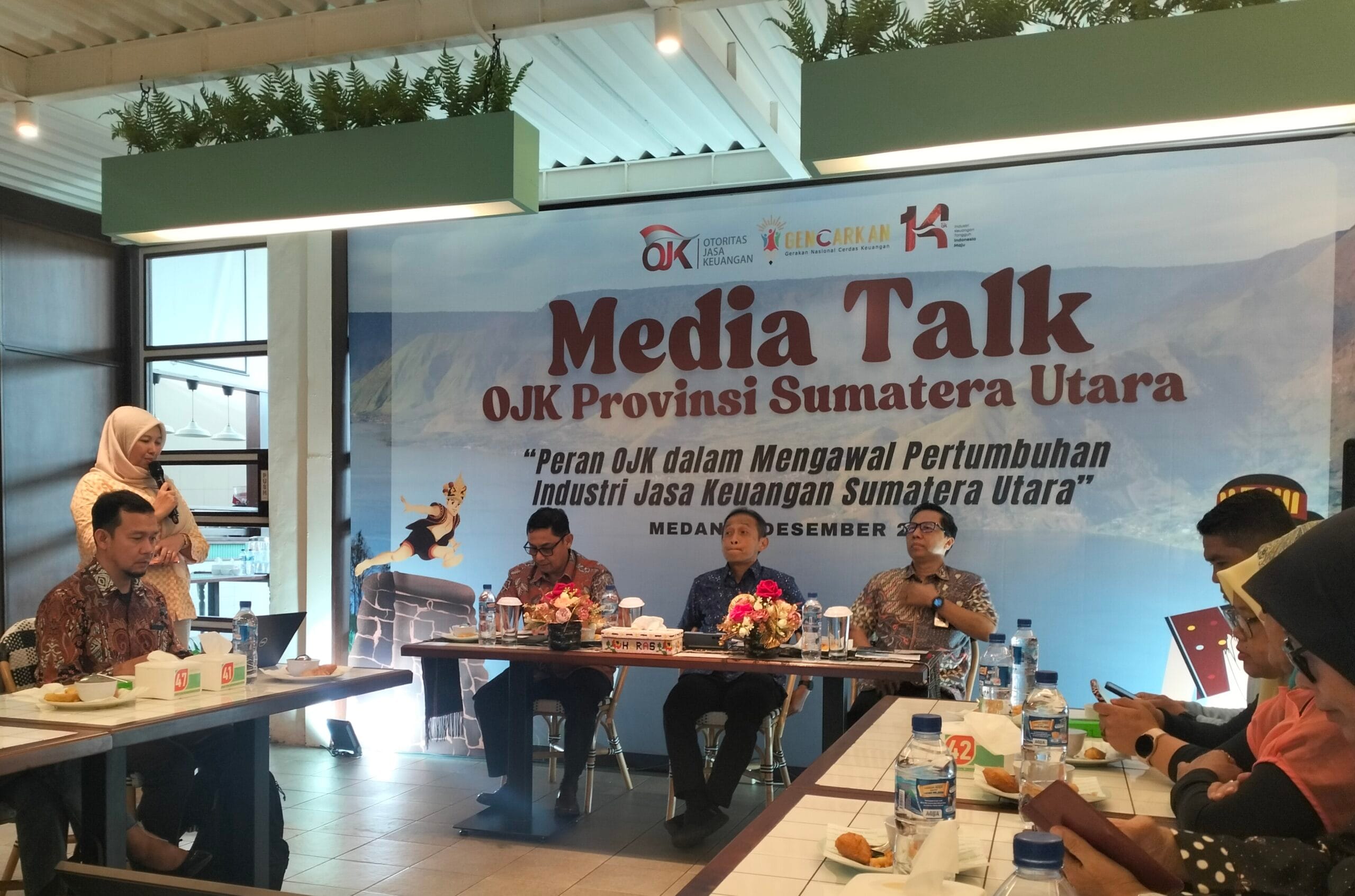 Medan-Intipnews.com:Ketua Otoritas Jasa Keuangan (OJK) Provinsi Sumatera Utara, Khoirul Muttaqien, memaparkan kondisi terkini perekonomian dan sektor jasa keuangan di Sumut dalam kegiatan Media Talk bersama Media partner OJK Provinsi Sumatera Utara, Kamis 4 Desember 2025 di Cantik Manis Kafe, Medan.