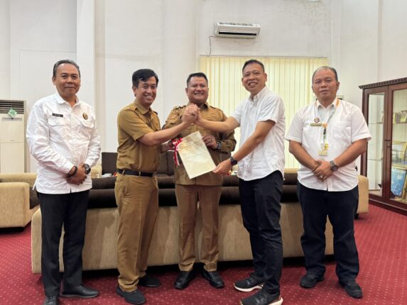 Asahan-Intipnews.com:Kepala Kantor Pertanahan Kabupaten Asahan Sumatera Utara, Pangihutan Manurung, S.H., M.A.P., M.A.S., dan Wakil Bupati Asahan, Rianto, S.H., M.AP, menyerahkan sertipikat tanah hak pakai atas nama Pemerintah Provinsi Sumatera Utara kepada Kepala Cabang Dinas Pendidikan Wilayah V Dinas Pendidikan Provinsi Sumatera Utara, Yafizham Parinduri, S.Sos, M.AP, Selasa (14/10/2025) di kantor Bupati Asahan.
