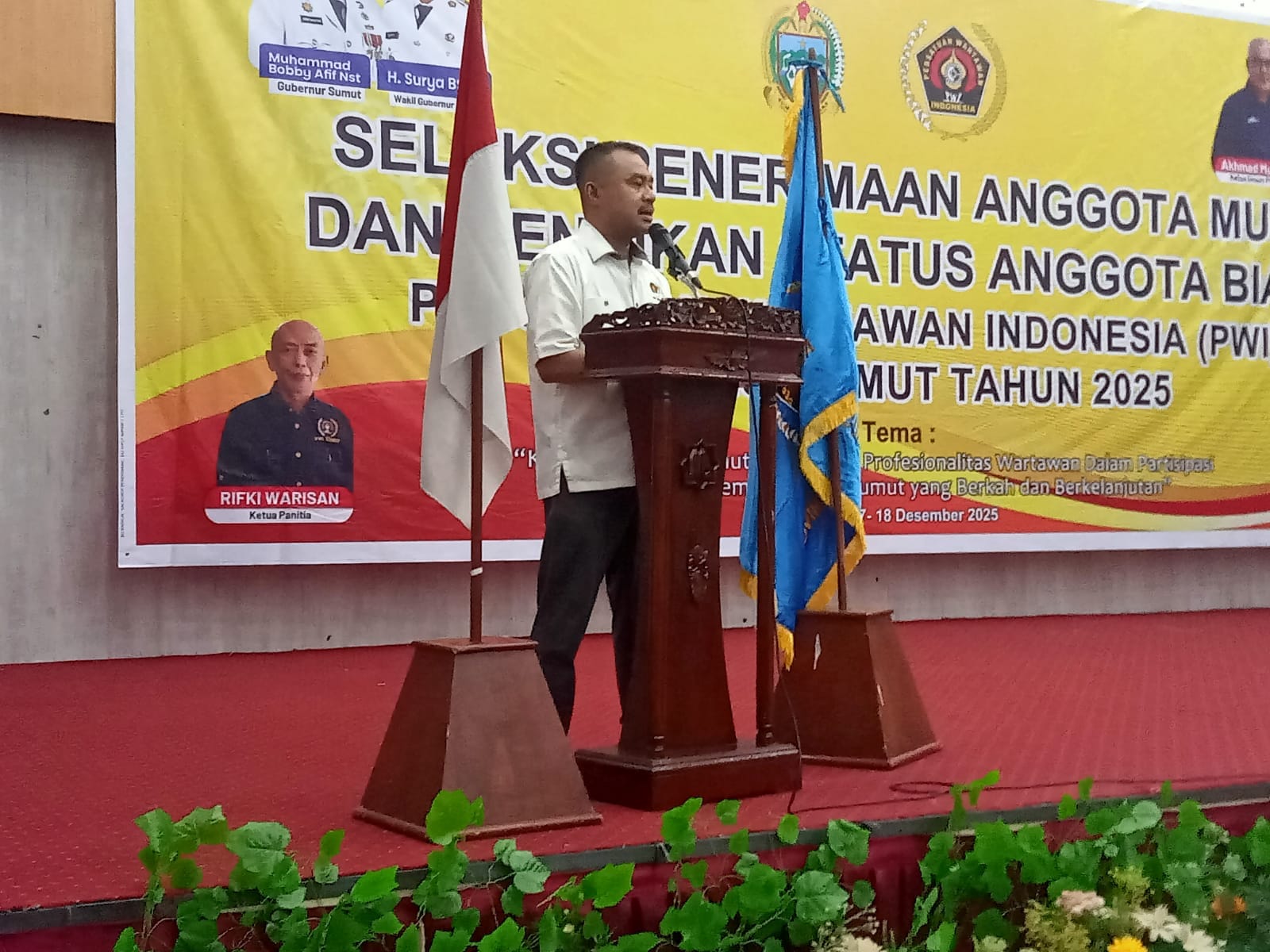 Medan-Intipnews.com:Ketua Persatuan Wartawan Indonesia (PWI) Sumatera Utara, H. Farianda Putra Sinik, S.E. (foto), membuka Seleksi Penerimaan Anggota Muda dan Kenaikan Status Anggota Biasa, di Hotel Madani, Medan, Sabtu (20/12/35).