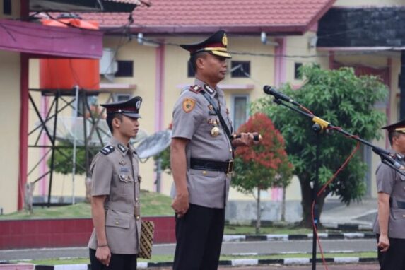 Dalam upacara tersebut, Waka Polres Nias, Kompol SK. Harefa, S.Pd., M.H., membacakan sejarah singkat Hari Juang Polri.