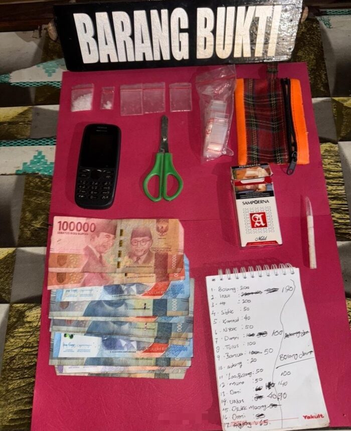 Tidak butuh waktu lama, sekira pukul 00.30 Wib, petugas berhasil mengamankan UHS dan D di rumah salah satu warga. Kemudian dilakukan penggeledahan, lalu ditemukan barang bukti berupa narkotika jenis sabu dengan berat bruto total 1,28 gram, uang tunai, alat pendukung penyalahgunaan narkotika, serta barang lainnya yang berkaitan dengan tindak pidana tersebut.