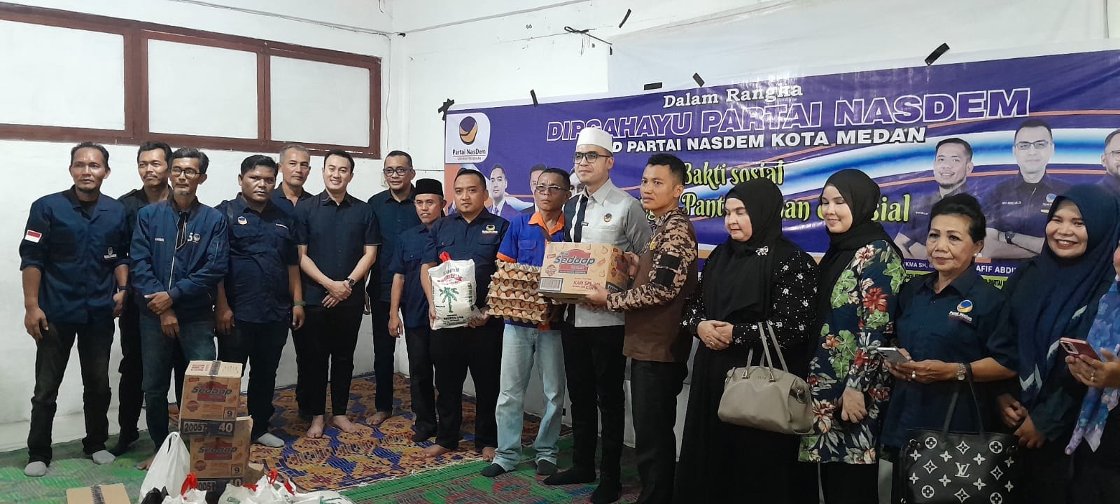 Medan-Intipnews.com:Dalam rangka memperingati HUT ke-14 Partai NasDem, Dewan Pimpinan Daerah (DPD) Partai NasDem Kota Medan menggelar kegiatan bakti sosial dengan menyerahkan bantuan ke Panti Asuhan Bani Adam AS di Jalan Mangaan III, Pasar II Mabar, Kecamatan Medan Deli, Sabtu (1/11/2025).