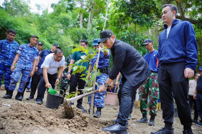 Usai menyapa dan berdialog dengan warga, Wali Kota Medan Rico Waas melakukan aksi penanaman pohon di bantaran sungai Babura.Itp.05
