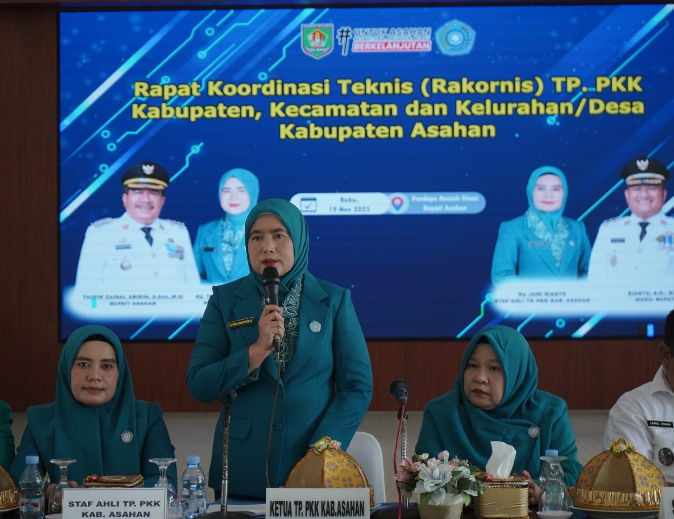 Asahan-Intipnews.com:Upaya memperkuat pemberdayaan keluarga, meningkatkan kesejahteraan perempuan, dan menguatkan peran dasawisma menjadi fokus utama TP. PKK Kabupaten Asahan pada Rapat Koordinasi Teknis (Rakornis) PKK bulan November bersama kecamatan, desa, dan kelurahan di Rumah dinas Bupati 20 November 2025.