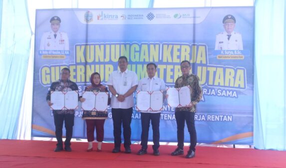 Asahan-Intipnews.com:Pemerintah Provinsi Sumatera Utara terus memperkuat kerja sama lintas daerah dalam mendorong pertumbuhan ekonomi dan ketenagakerjaan regional. Hal itu tampak dalam kegiatan penandatanganan kerja sama antara Pemprov Sumut dengan PT Kawasan Industri Nusantara (Kinra) selaku pengelola Kawasan Ekonomi Khusus (KEK) Sei Mangkei, yang dirangkai dengan penyerahan Kartu BPJS Ketenagakerjaan bagi pekerja rentan oleh Gubernur Sumut, Bobby Nasution.