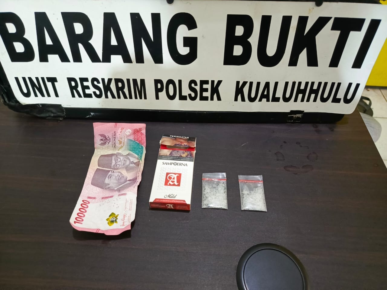 “Dari dalam kantong celana sebelah kiri terdapat satu bungkus rokok Sampoerna yang didalamnya ditemukan dua plastik klip transparan yang didalamnya diduga juga terdapat narkotika jenis sabu sabu dengan berat bruto 2,19 gram, dan uang sebanyak Rp 100.000” katanya. (foto).