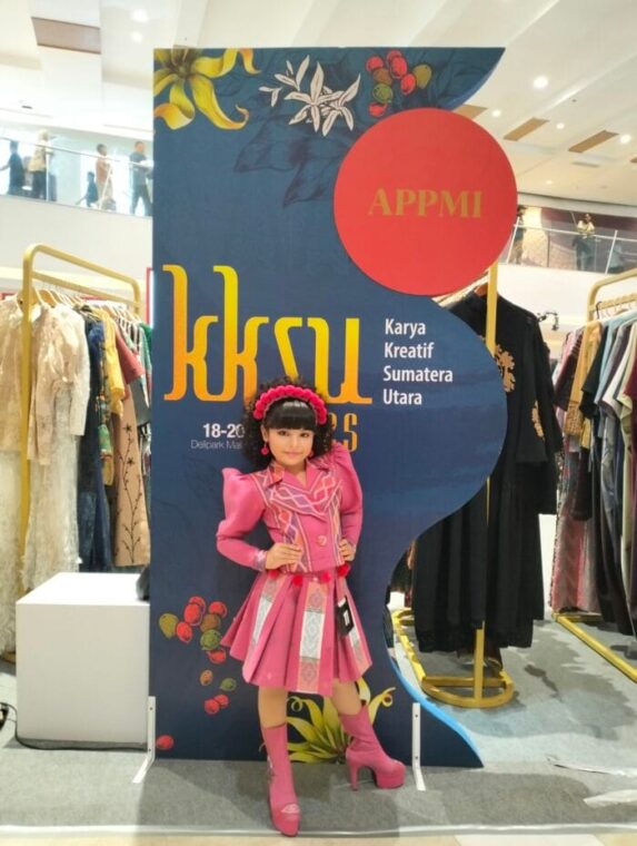 Medan-Intipnews.com:Zea Almira, siswa kelas 1 SD Ikal Medan kembali menunjukkan bakatnya di atas catwalk di acara Karya Kreatif Sumatera Utara (KKSU) 2025, Minggu (20/7/25).